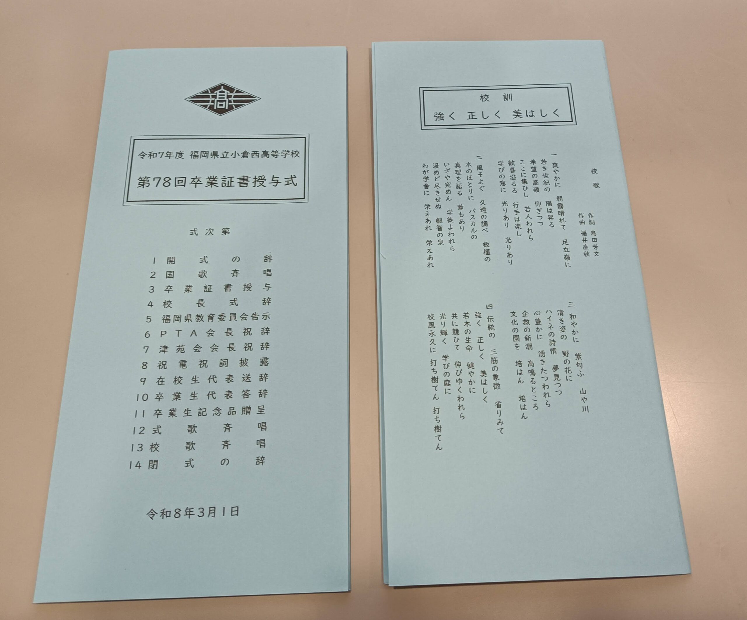 高校78期の皆さん、ご卒業おめでとうございます。